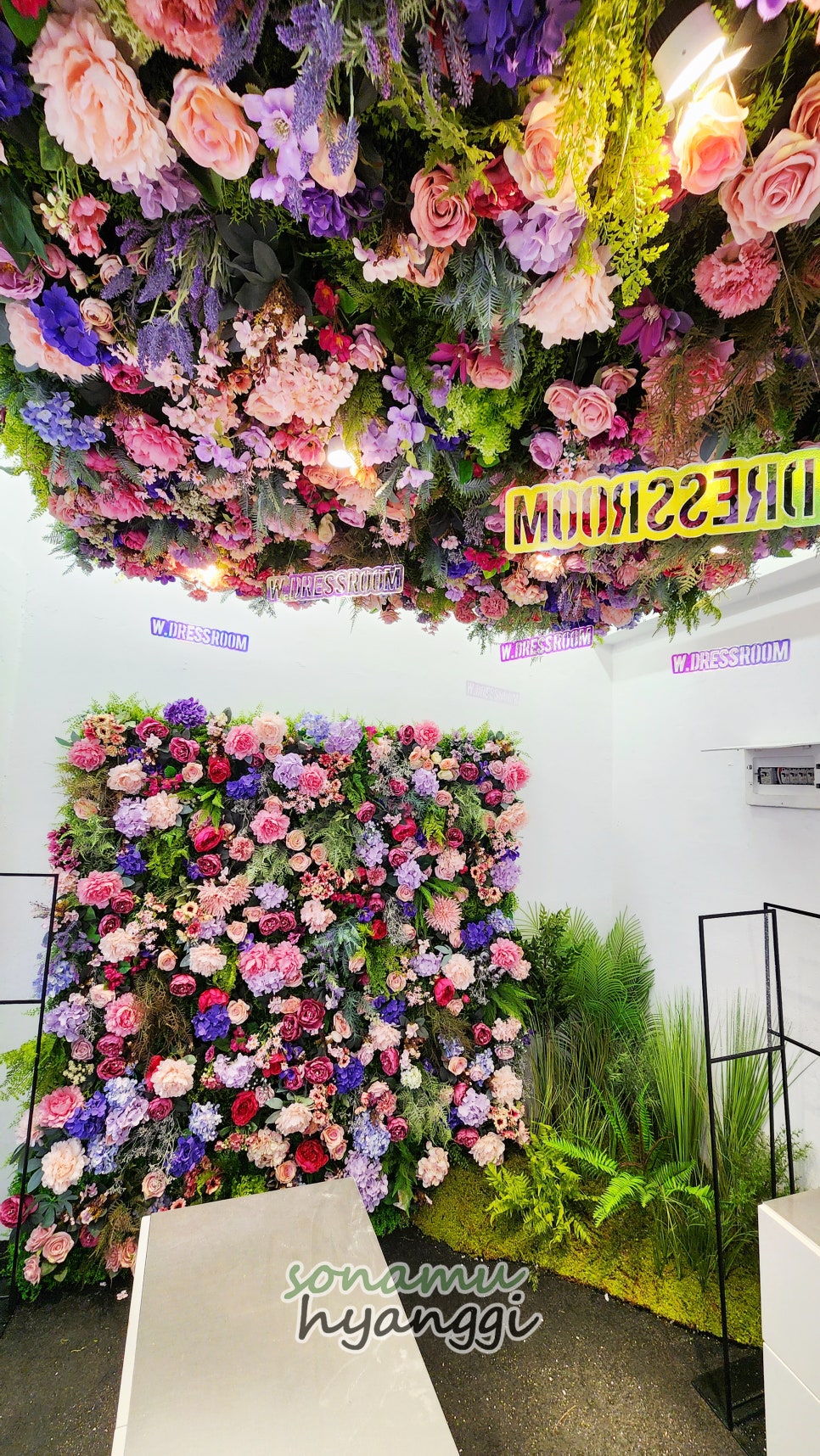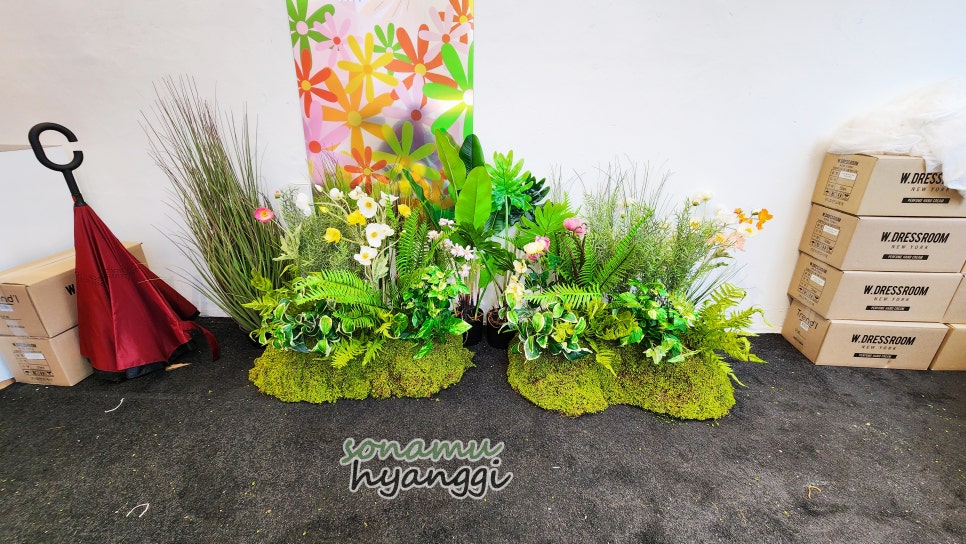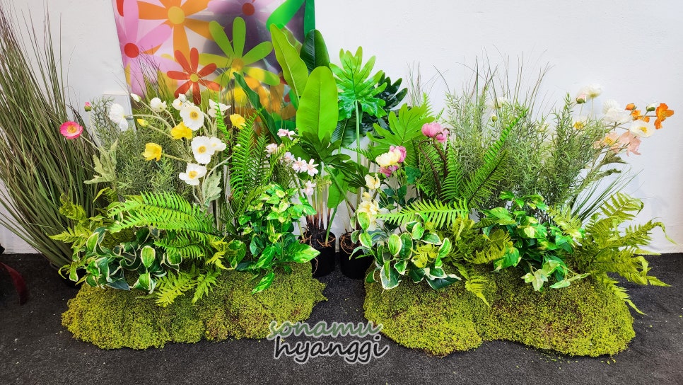 플라워 월 옆에는 큰 조화 종류를 사용했습니다.