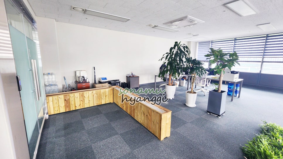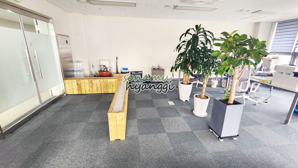 사무실 입구에 화분 두 개를 'ㄱ' 자로 배치했습니다.