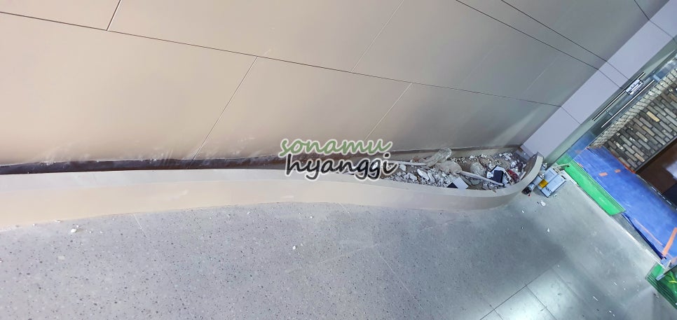 갈대 조경을 위해서 복도 한쪽 벽면에 화단을 쭉 만들어 놓으셨었는데요.