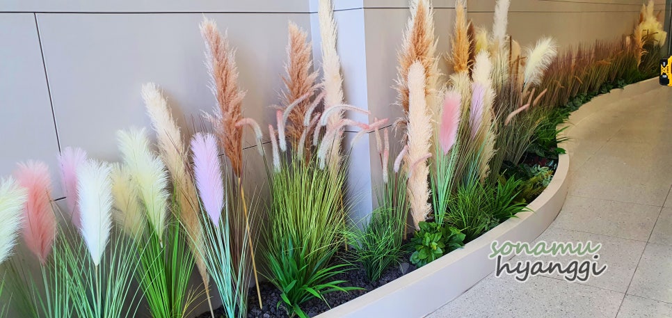 한쪽 벽면에 이런 갈대들을 일렬로 쭉 심어서 풍성하게 연출을 진행했는데요.