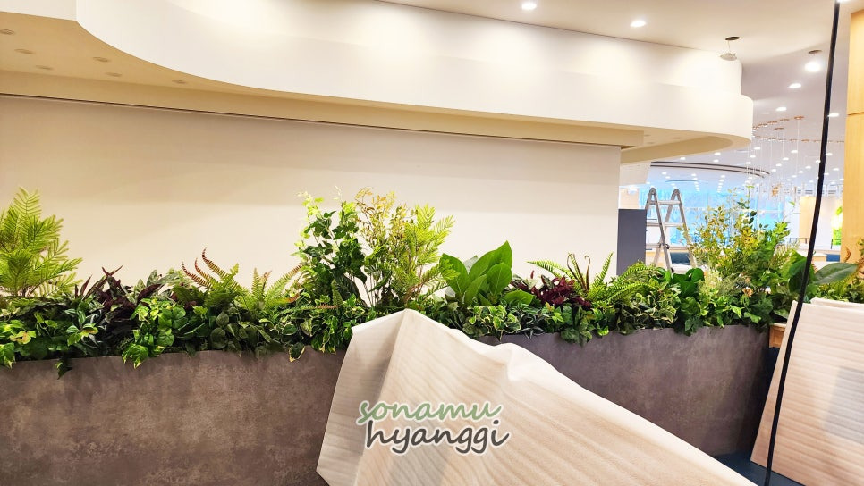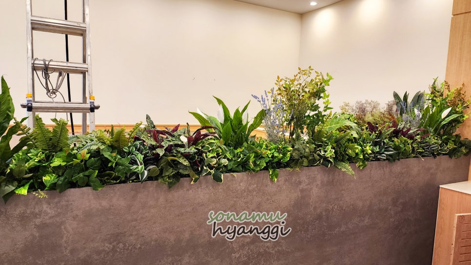 전체적으로 풍성한 조화 조경을 볼 수 있던 공간이 되었죠.