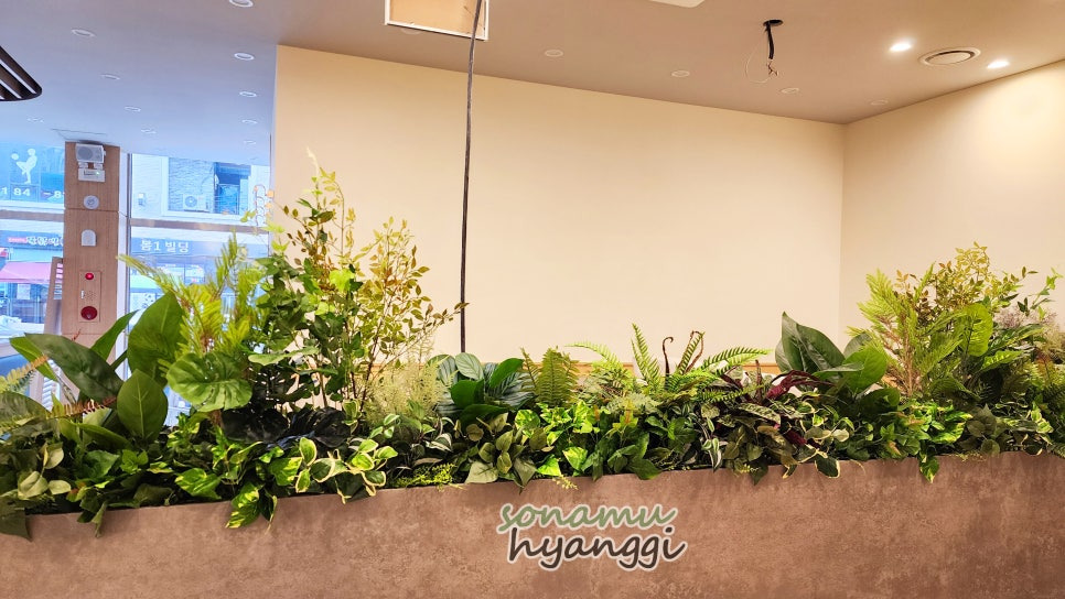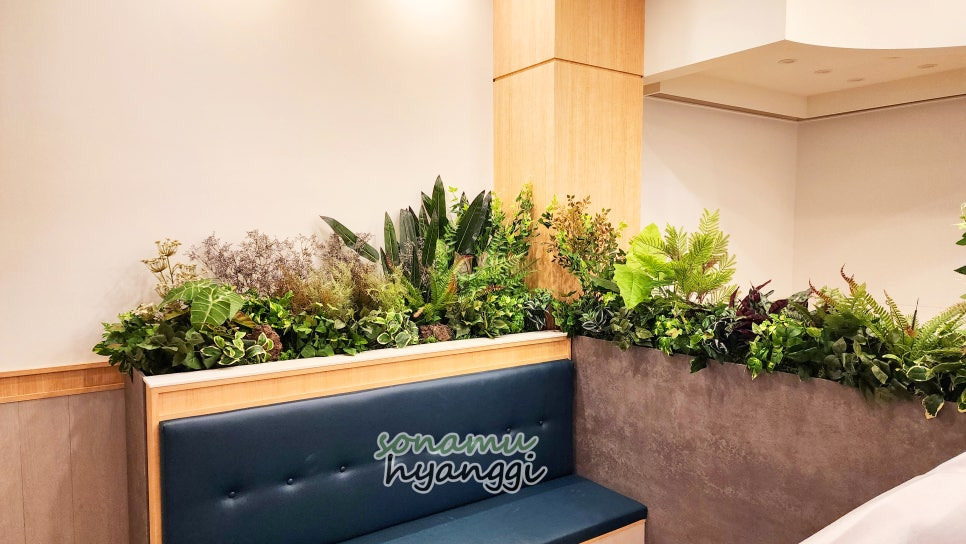 식당 안에는 파티션 화분을 두 군데 연출했고