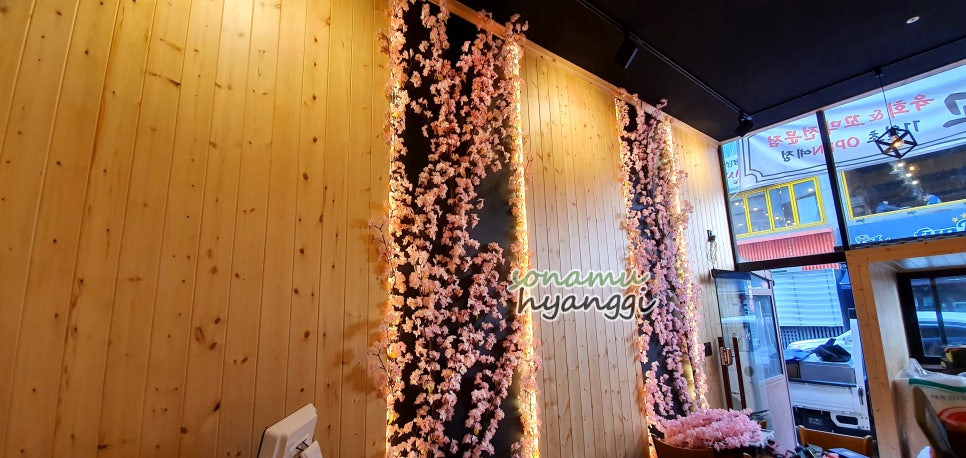 조화 벚꽃까지 연출이 되니 더욱더 분위기가 살아나는 듯한 인테리어로 디자인이 되었습니다.