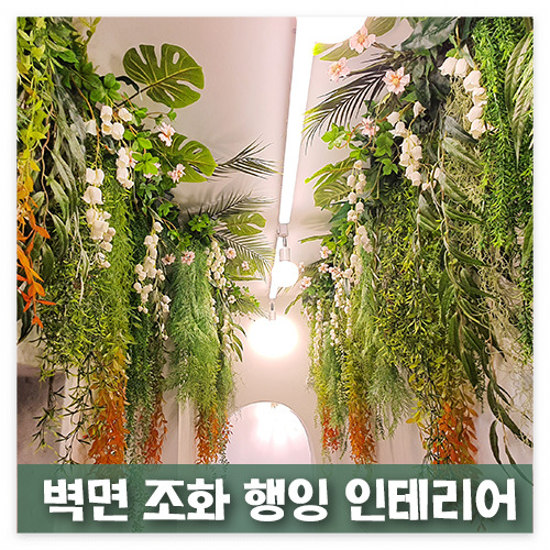 꽃 길 같아 보이면서도 벽을 따라 내려온 조화 행잉 인테리어가