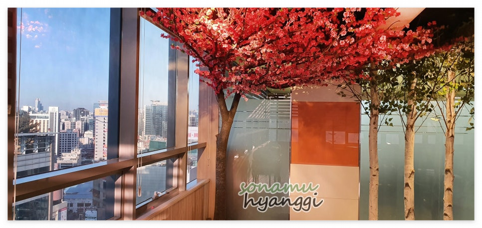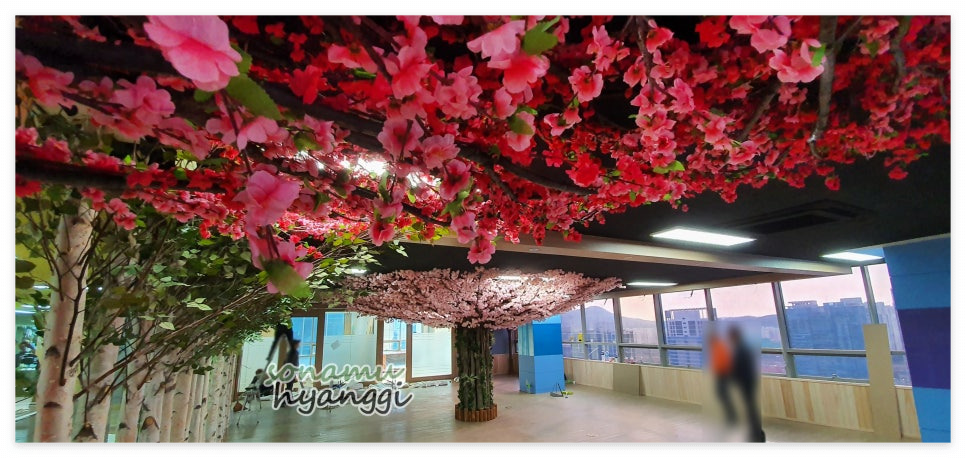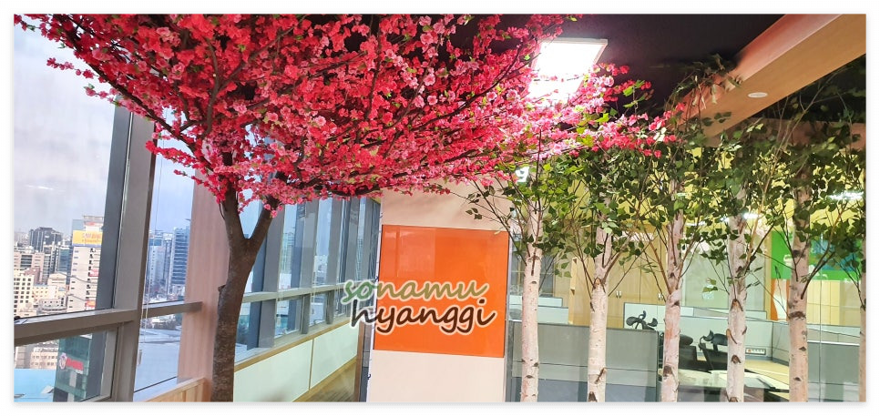 오늘은 실내 조경으로 인기가 많은 조화 인테리어 중에서 화사한 매화 인조나무를 시공하였는데요.