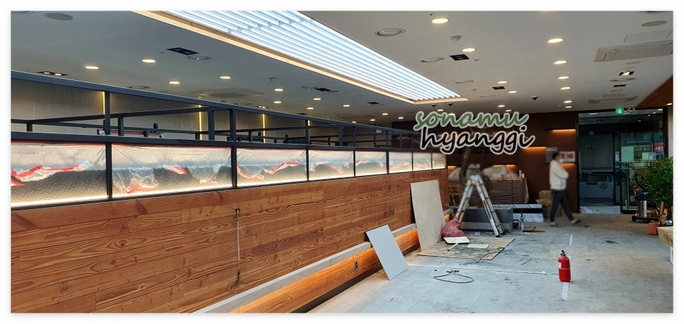 시공이 완료된 후 내부 모습입니다! 벽면을 따라 길게 늘어선 벽면 조화가 내부를 더 깨끗하고 신선하게 보이게 해주네요 :)