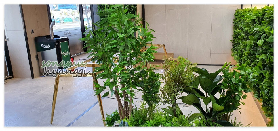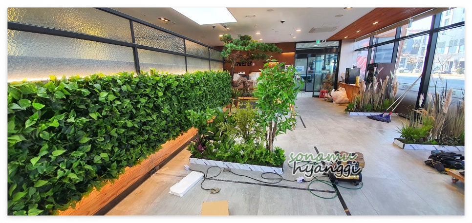 멀리서 보니 푸른 조화 조경이 공간을 분리해 주고 포인트가 되는 역할이 되었는데요 :)
